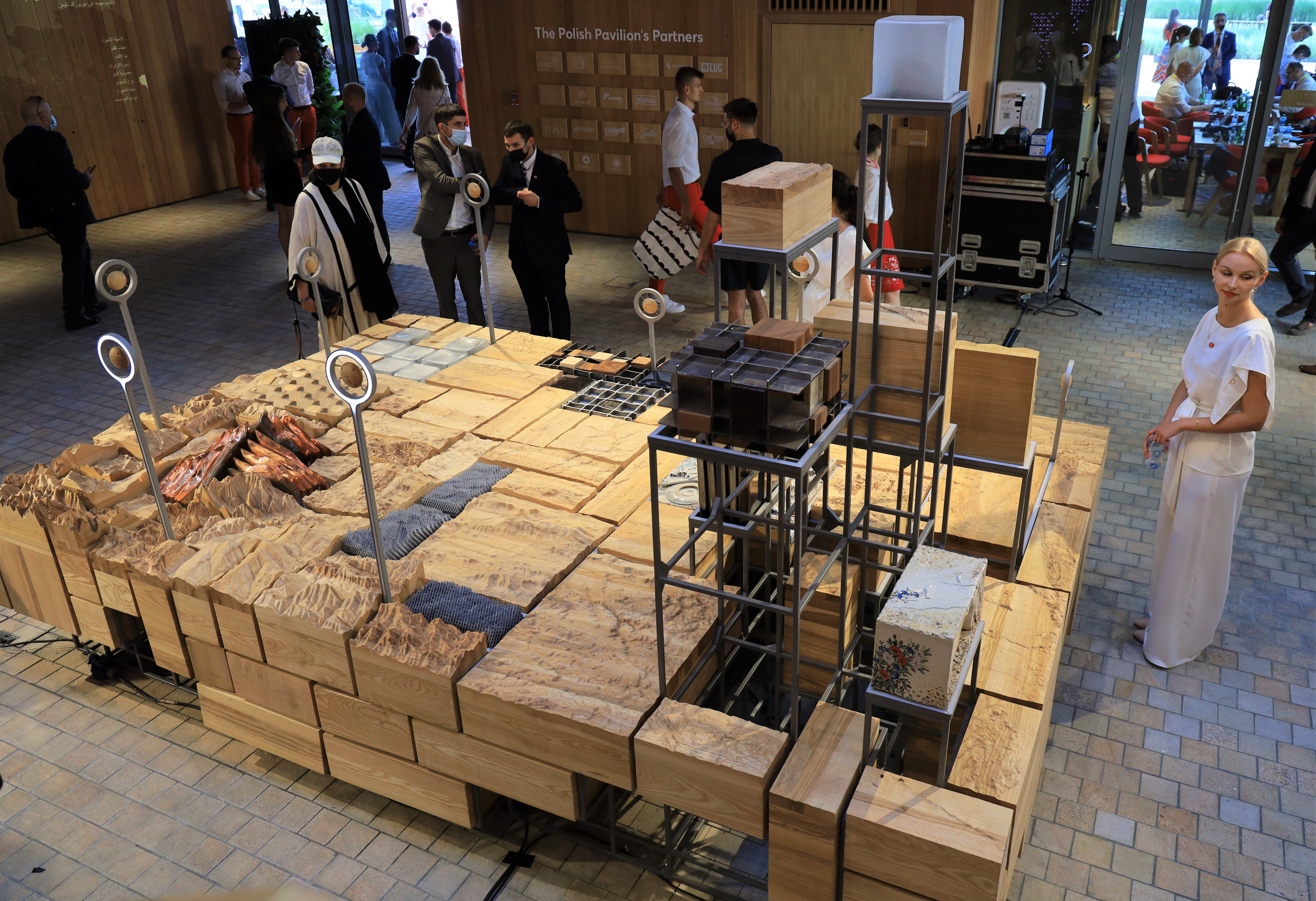 Hasłem promującym polski pawilon na dubajskich targach jest „Poland. Creativity inspired by nature”. Jednym z elementów pawilonu jest projekt Xylopolis, łączący szereg działań z zakresu edukacji proekologicznej z wystawą. Na parterze pawilonu można podziwiać niezwykłą instalację “Stół polski”. Jego forma przypomina mozaikę, która złożona została z fragmentów surowców charakterystycznych dla Polski. Wśród nich znalazły się: drewno, miedź, stal, szkło, drewno, aluminium i ceramika. Każdy z tych elementów symbolizuje inną część kraju.