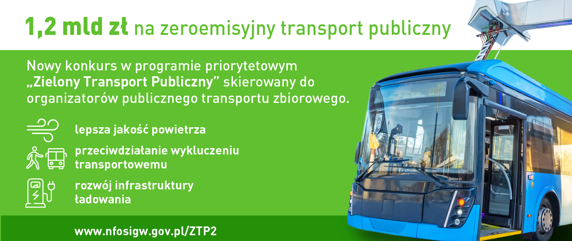 Ogłoszony przez NFOŚiGW program priorytetowy „Zielony Transport Publiczny” wspiera rozwój bezemisyjnego transportu publicznego w Polsce. Jego celem jest obniżenie wykorzystania energii i paliw emisyjnych w publicznym transporcie zbiorowym, a także rozwój zielonej, inkluzywnej mobilności.