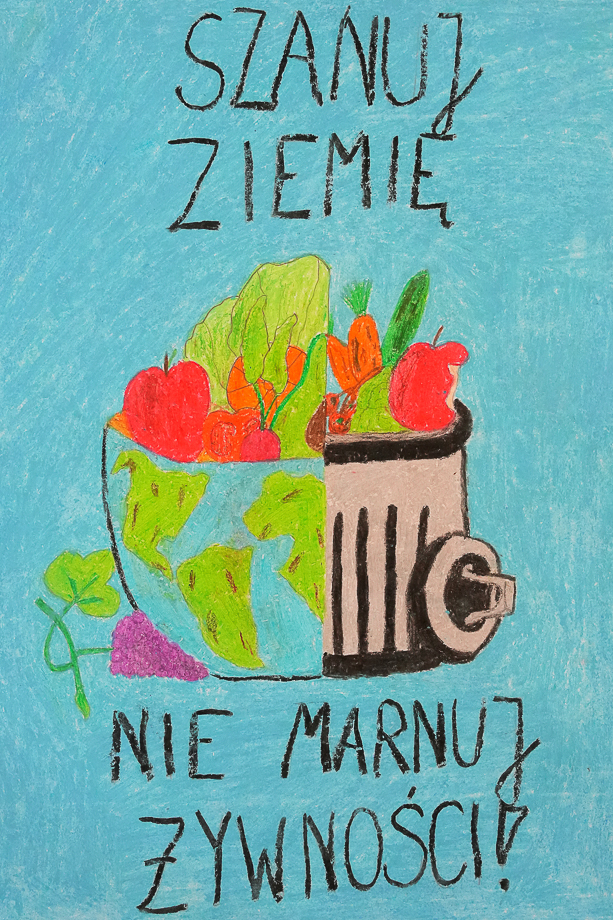 Uczestnicy konkursu plastycznego „Nie marnuj żywności – szkoda planety!” – uczniowie szkół podstawowych – mieli za zadanie narysować lub namalować plakat, który pomoże w promowaniu idei niemarnowania żywności.