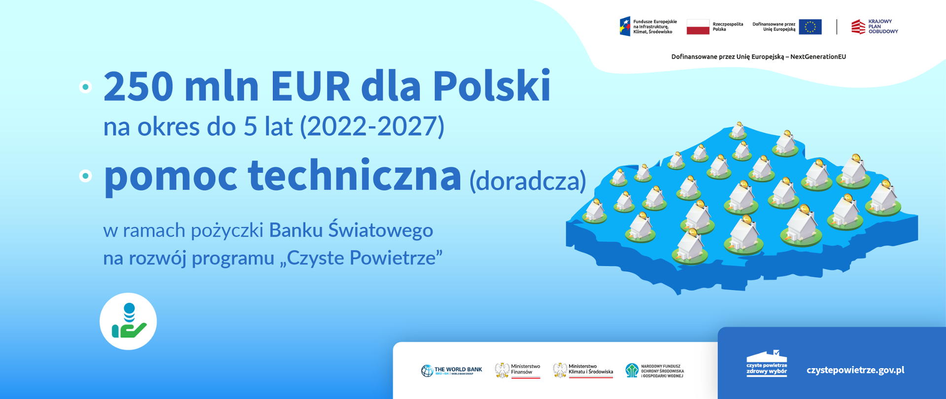 Podpisana umowa pożyczki „Program Czyste Powietrze: ekologiczne źródła ogrzewania w sektorze mieszkaniowym” (pożyczka MBOiR nr 9310-PL) niesie za sobą finansowe wsparcie dla Polski, ale również wsparcie doradcze ekspertów Banku Światowego w zakresie skutecznej realizacji i dalszego rozwoju programu priorytetowego „Czyste Powietrze” (PPCP – program priorytetowy „Czyste Powietrze”).