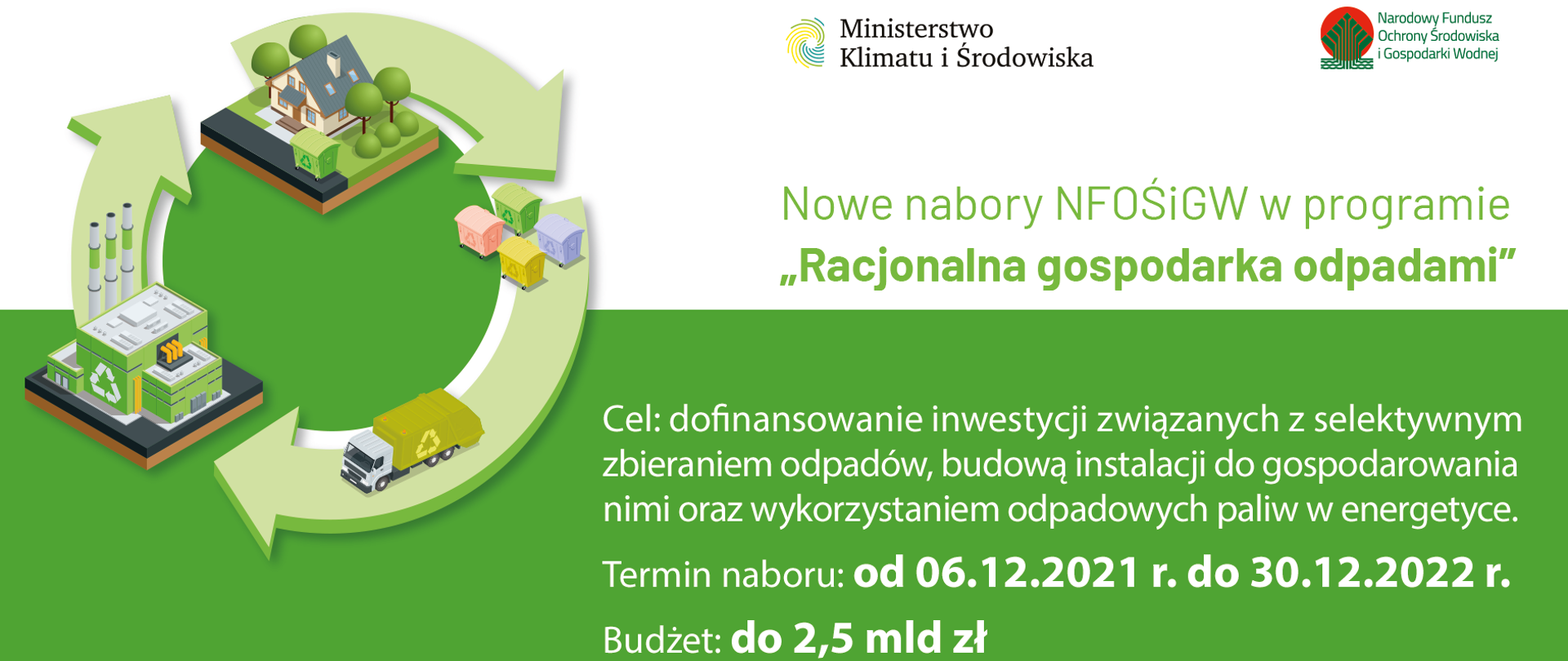 Nabory wniosków w wymienionych wyżej trzech częściach programu „Racjonalna gospodarka odpadami” , które NFOŚiGW rozpoczął 6 grudnia 2021 r., potrwają nieco ponad rok i zakończą się 30 grudnia 2022 r.