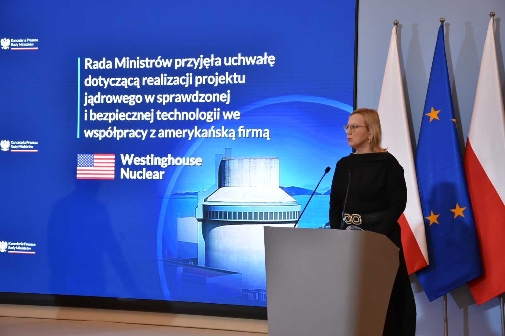 Rada Ministrów, 2 listopada 2022 r., przyjęła uchwałę ws. budowy wielkoskalowych elektrowni jądrowych w Polsce. Stwierdza ona, że pierwsza w Polsce elektrownia jądrowa zostanie zbudowana w oparciu o amerykańską technologię reaktorów AP1000. „Wybór amerykańskiej technologii nie tylko wzmocni bezpieczeństwo energetyczne Polski, ale i będzie stanowił istotny impuls rozwojowy dla naszej gospodarki” – zaznaczyła minister klimatu i środowiska Anna Moskwa.