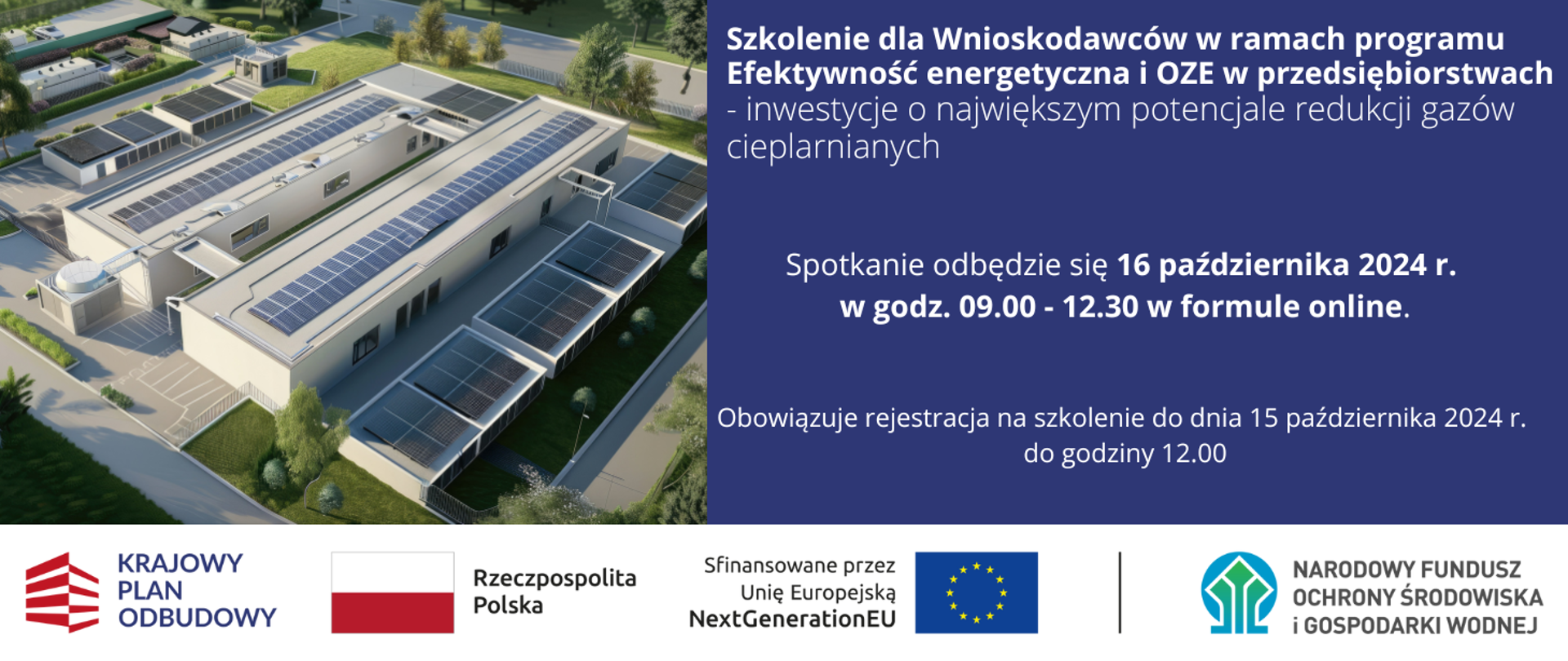 Zapraszamy na szkolenie online przeznaczone dla dużych przedsiębiorstw zainteresowanych wsparciem na realizację przedsięwzięć w zakresie efektywności energetycznej i OZE.